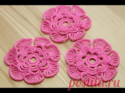 Как связать ЦВЕТОК крючком - вязание крючком - Crochet 3D Flower Pattern