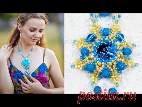 Оплетение риволи бисером, мастер-класс. Колье "Голубая волна" Часть 2.