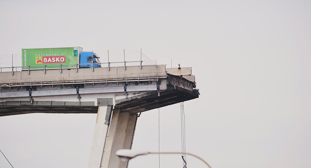 Фотографии зеленого грузовика, который остановился на краю обрушившегося моста в Генуе в Италии, получили популярность в социальных сетях, став одним из своеобразных символов трагедии.