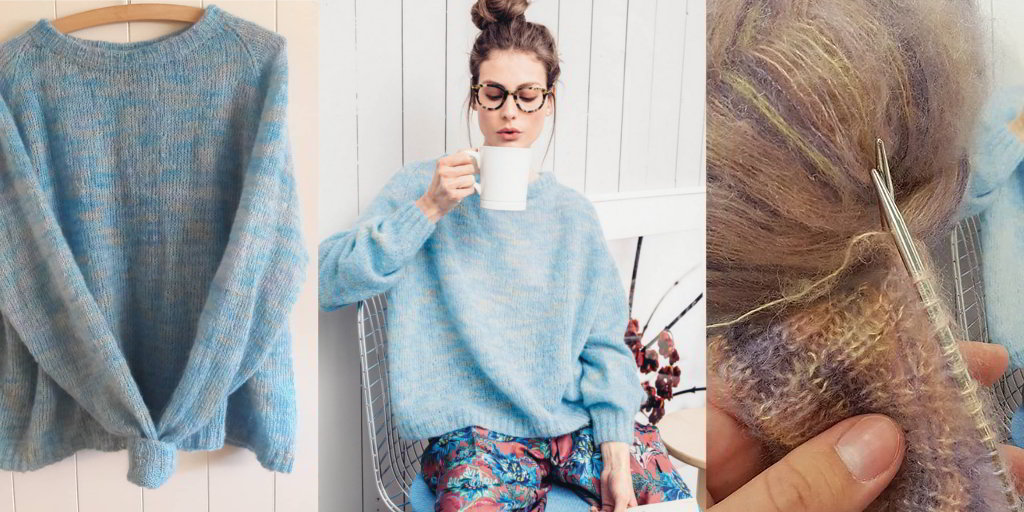 Свитер из мохера Kosegenser Свитер из мохера женский вязаный спицами в модном фасоне оверсаз. Свитер формируется регланом и вяжется спицами без швов, с двойной горловиной, более оптимальной для мохера.