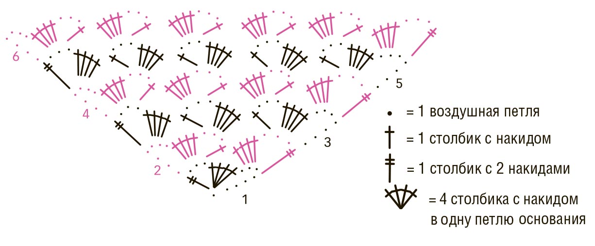 Платок из пряжи секционного крашения - схема вязания крючком. Вяжем Шали на Verena.ru