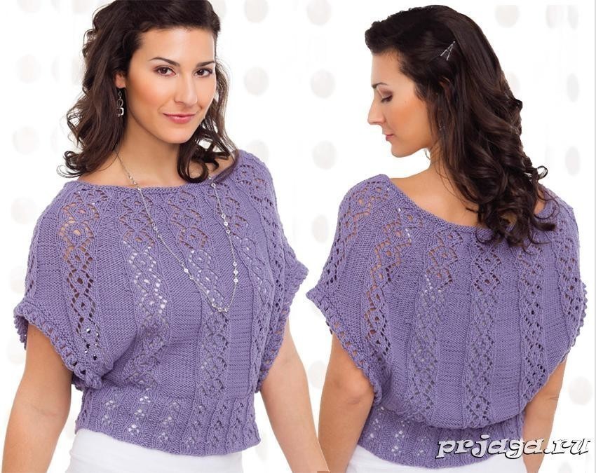Лиловая ажурная кофточка спицами Описание: http://prjaga.ru/vyazanie-dlya-zhenshchin/top-azhurnaya-koftochka/lilovaya-azhurnaya-koftochka-spicami