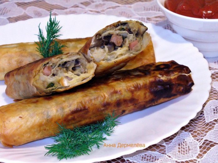 Хрустящие «Полешки» из тонкого лаваша с грибами