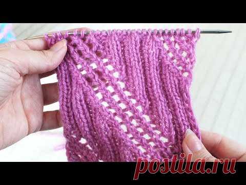 АЖУРНЫЕ ДИАГОНАЛЬНЫЕ ПОЛОСЫ|УЗОР СПИЦАМИ, ПОДРОБНЫЙ РАЗБОР И СХЕМА