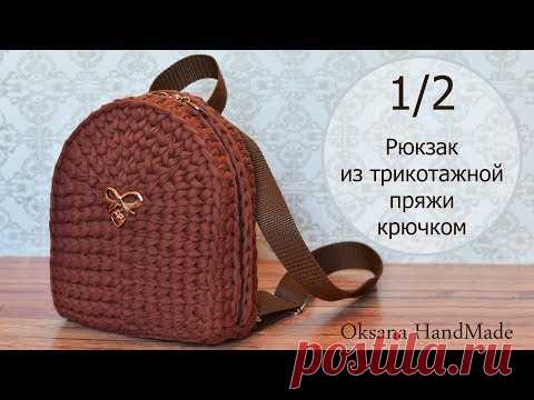 Рюкзак крючком из одного мотка трикотажной пряжи. 1/2 мастер класс. Backpack crochet