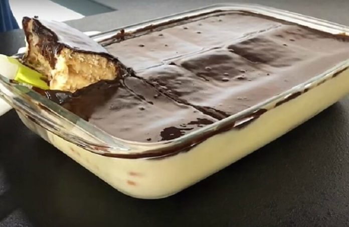 Супер вкусный десерт — Просто залил и готово Ингредиенты: печенье Для заливки: 1 банка сгущённого молока 4 шт — яйца...