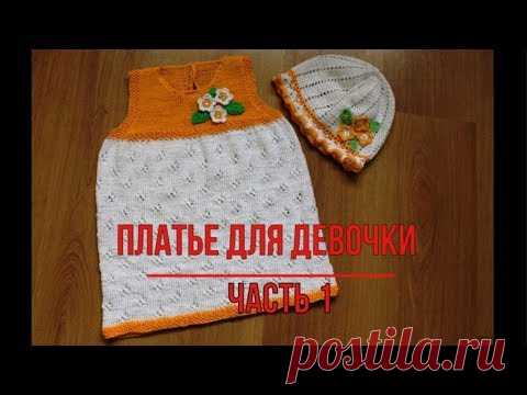 Платье вязанное спицами из хлопка для девочка. 1 часть. Летнее вязание. - YouTube