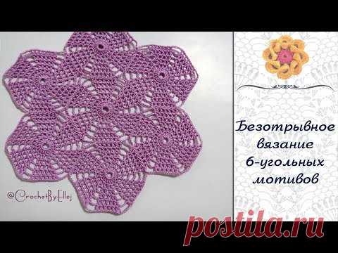 ♥ Безотрывное вязание шестиугольных мотивов «Флюгер» • Continuous crochet • ellej.org