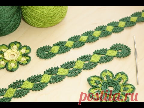 Ленточное кружево вязание крючком Crochet Lace Braid Ribbon Tape Tutorial