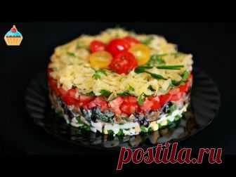 Вкуснейший слоеный салат торт "Безумный" с баклажанами по рецепту Семейной кухни. Ну очень вкусный и сытный праздничный салат из баклажанов. Простой в пригот...