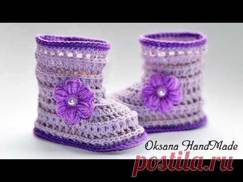 Ажурные пинетки сапожки крючком. Booties crochet