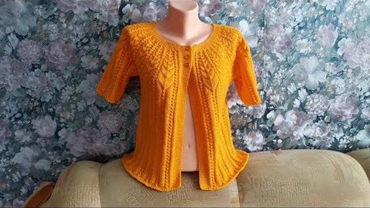 Как вязала жакет с круглой кокеткой "Листья".Описание+схема+образец.Экспресс МК.