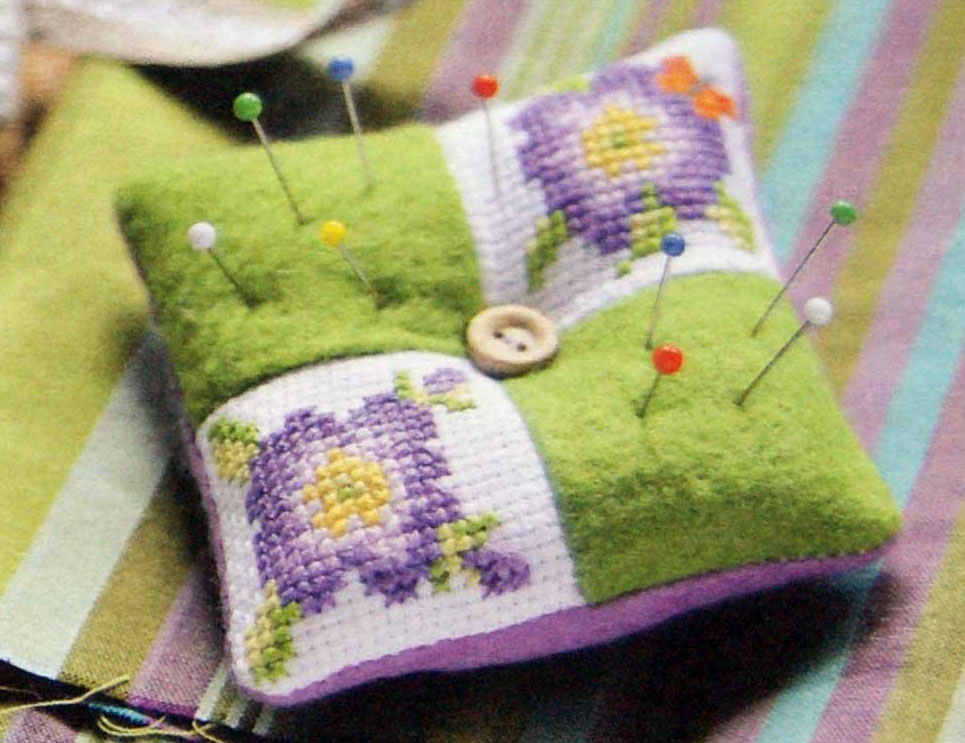 Несложно и симпатично -- игольница с цветочной вышивкой крестом
