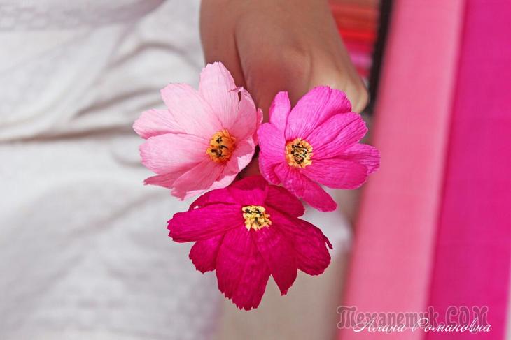 Удивительно насколько просто сделать цветы космеи из... Космея — непокорный цветок, его часто можно встретить в дикой природе. У него простая и в то же время сложная форма.Для выполнения этой модели прекрасно подойдет гофрированная иди крепированная бумага...