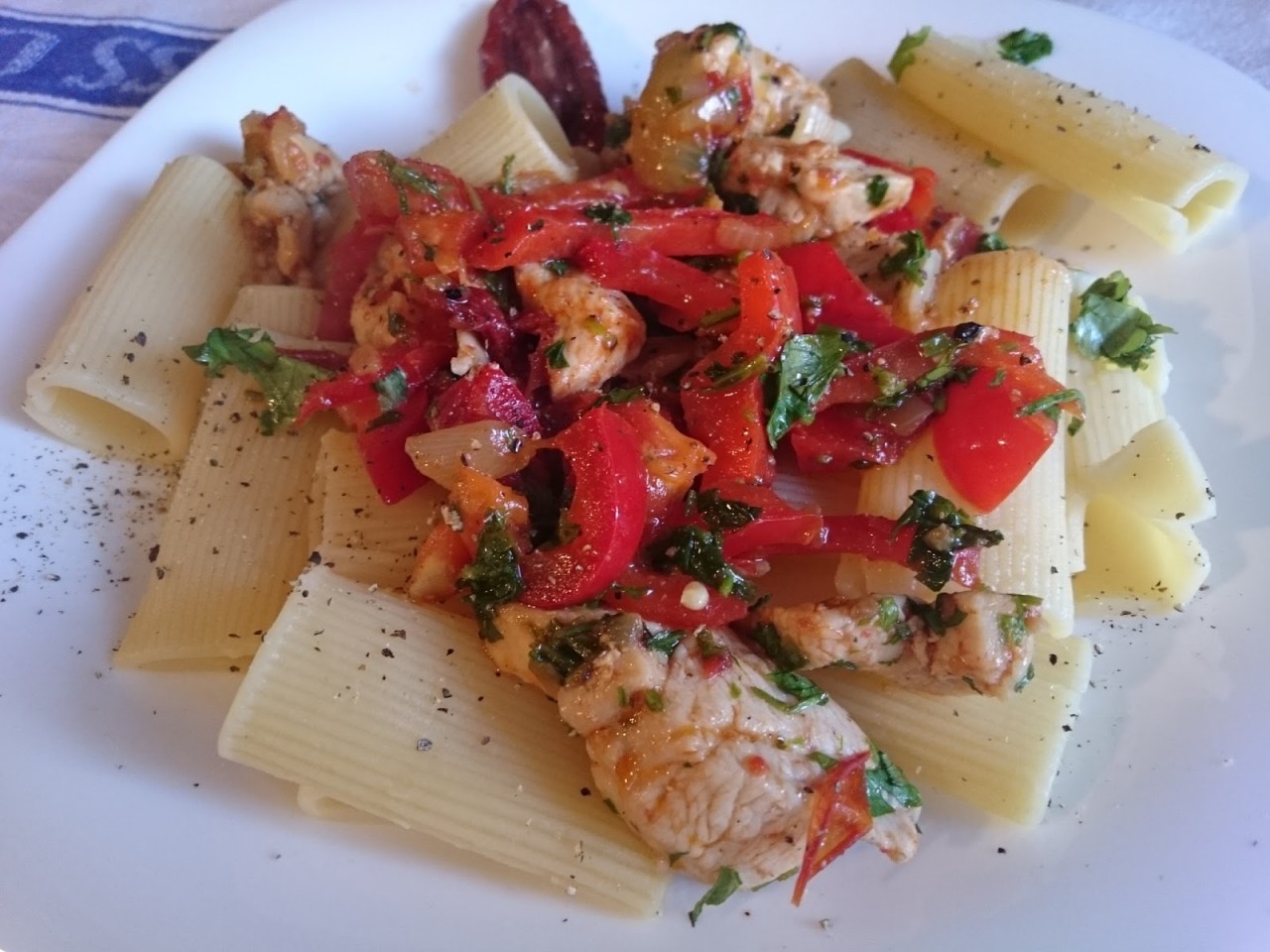 Грудка птицы с макаронами и вяленными помидорами Танцы от плиты и до компа !!!