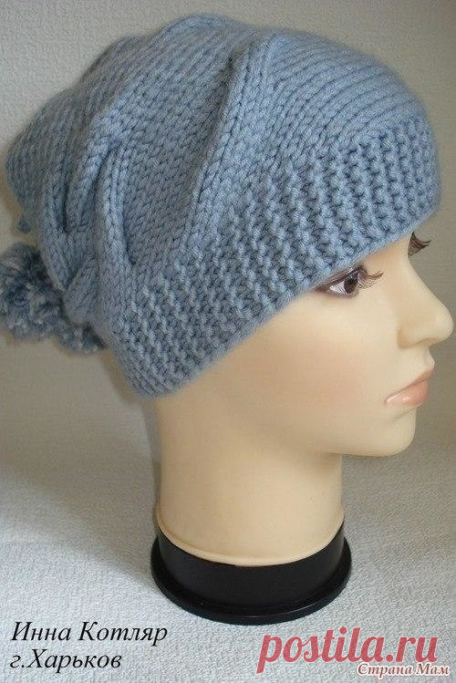 Интересная модная вязаная женская шапка. Из китайского журнала. Связана спицами.