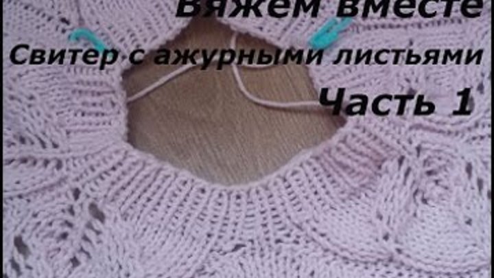 Вяжем вместе/Свитер с ажурными листьями/Регланом сверху