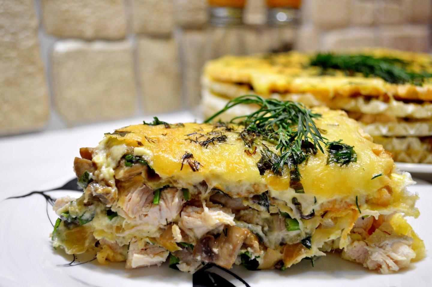 Закусочный торт Наполеон с курицей и грибами рецепт с фото и видео - 1000.menu