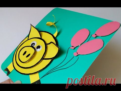 Супер-Быстро Новогодние Поделки 2019.Что Подарить В Год Свиньи?Как Сделать Свинка-Открытка Бумага МК