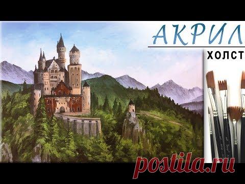 "Пейзаж. Старинный замок", как нарисовать 🎨АКРИЛ! ДЕМО Мастер-класс