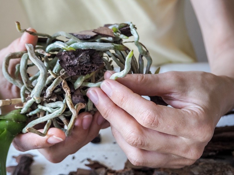 Что делать с корнями орхидеи Орхидея — цветок изысканный и вместе с тем самый распространенный сейчас среди любителей вазонов. Ее есть за что любить: цветет красиво, долго, до полугода, особого ухода за собой не требует.