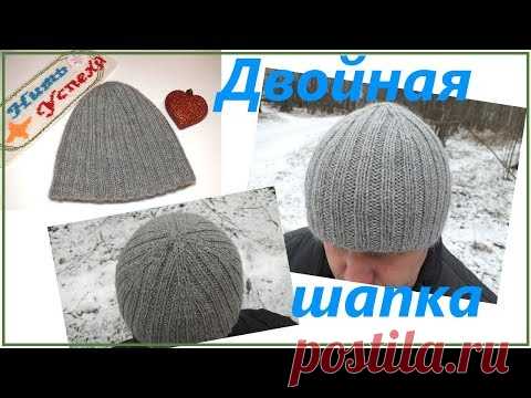 Двойная мужская шапка с одновременным вязанием обоих полотен/ Как связать
