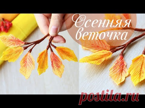 Осенняя веточка с желтыми листьями из гофрированной бумаги