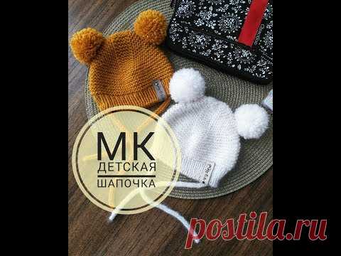 МАСТЕР-КЛАСС ДЕТСКАЯ ШАПОЧКА ОТ 0-3 МЕСЯЦЕВ С ПОМПОНАМИ И ЗАВЯЗКАМИ