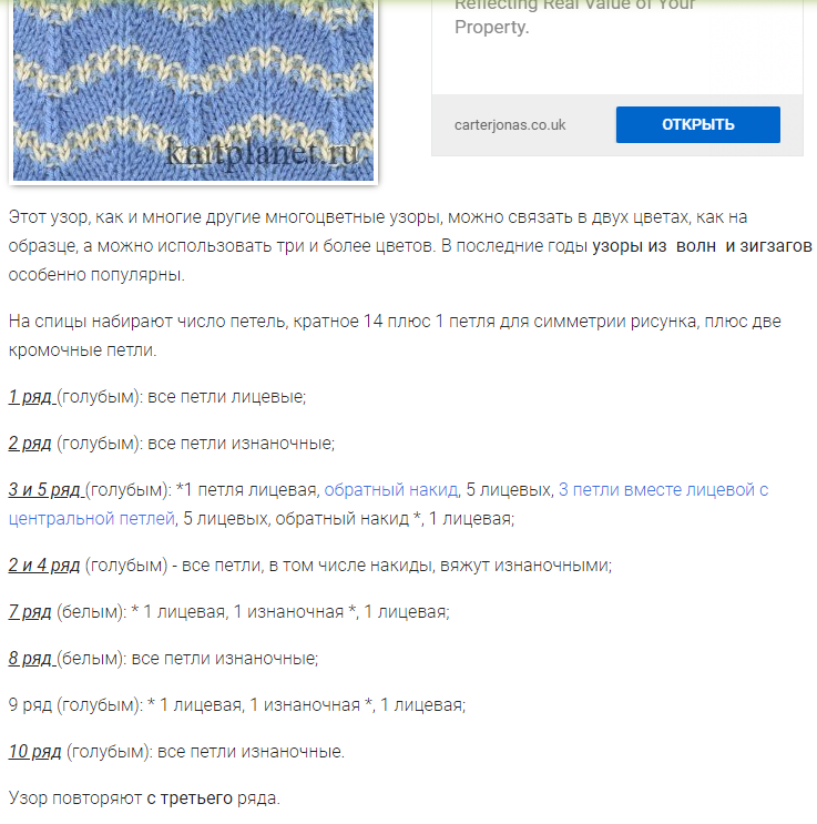 Планета Вязания | Многоцветный волнистый узор (узор зигзаг) спицами.