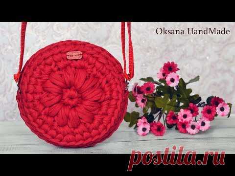 Круглая сумка из трикотажной пряжи. Round crochet bag