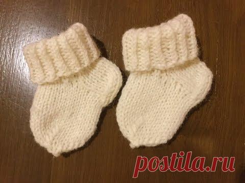 Носочки детские для новорожденных спицами (простой способ).