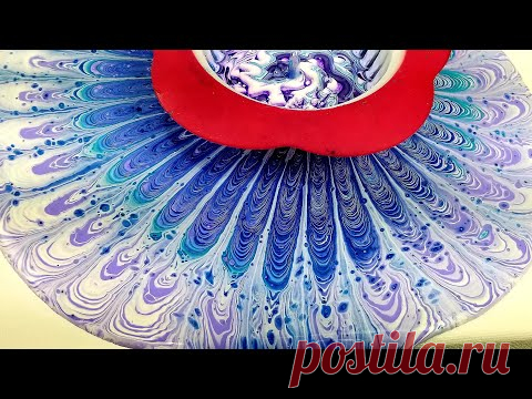 (29) 2nd Acrylic Swirl pour with Sink Strainer on canvas and vinyl record, Awsome results 💜💙