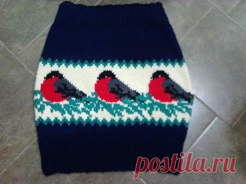 Теплая юбка со снегирями , ч.1. Warm skirt with bullfinches, р.1. Knitting