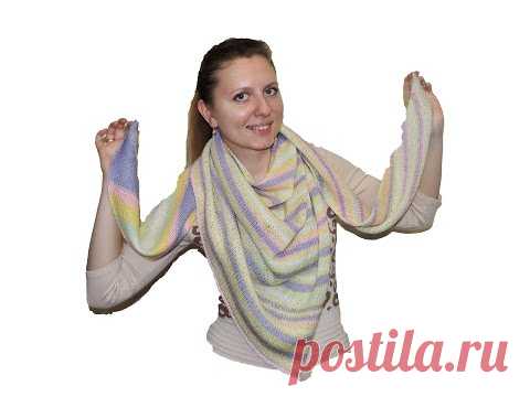 Бактус спицами из меланжевой пряжи с ассиметричными полосами