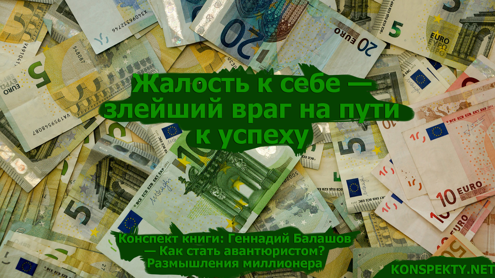 Жалость к себе — злейший враг на пути к успеху Конспект книги: Геннадий Балашов — Как стать авантюристом? Размышления миллионера #KONSPEKTYNET #Цитаты #Высказывания #Афоризмы #Мудрость #Успех #Желания #Мечты #Достижения #Мотивация