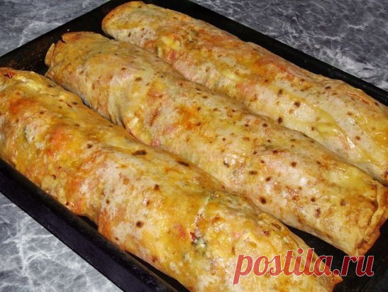 "Фаршированный" лаваш, запечённый в духовке.
