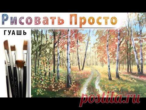 "Осенний лес. Пейзаж", как нарисовать 🎨ГУАШЬ! Мастер-класс