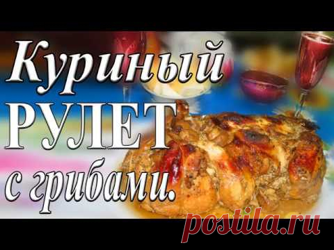 Куриный рулет с грибами в сметанном соусе.