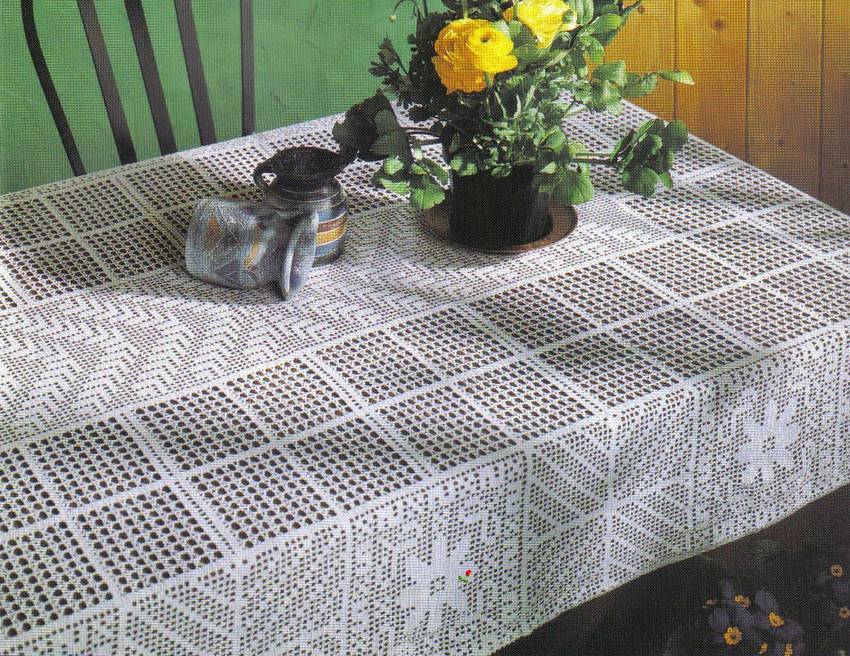 Прямоугольная скатерть в филейной технике (110 на 180 см.).