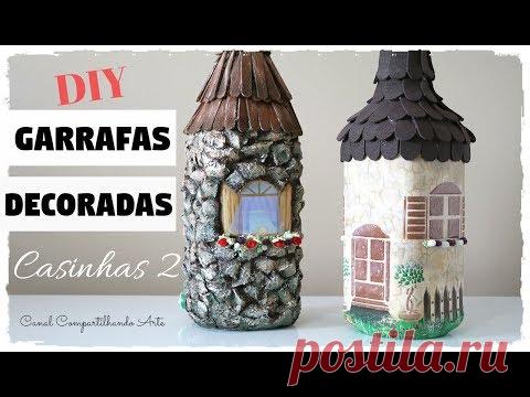 DIY GARRAFAS DECORADAS CASINHAS # 2 - Artesanato do Compartilhando Arte - Do lixo ao Luxo