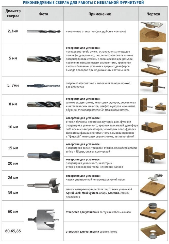 Сверла для работы с мебельной фурнитурой