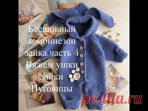 как вязать ушки зайки, как пришивать пуговицу, стильный бесшовный комбинезон-часть 4