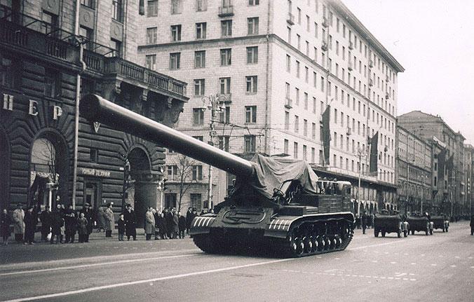 «Ядерный» миномет 2Б1 «Ока» на гусеничном ходу, вопреки мнениям некоторых историков, был (ненадолго) принят на вооружение Советской Армии и даже неоднократно принимал участие в парадах военной техники на Красной площади.