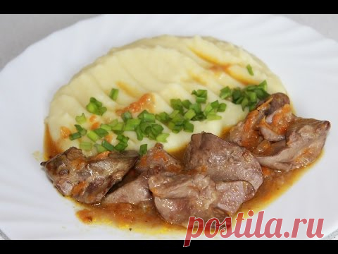 Куриная печень тушеная с луком и морковью. Очень вкусно!