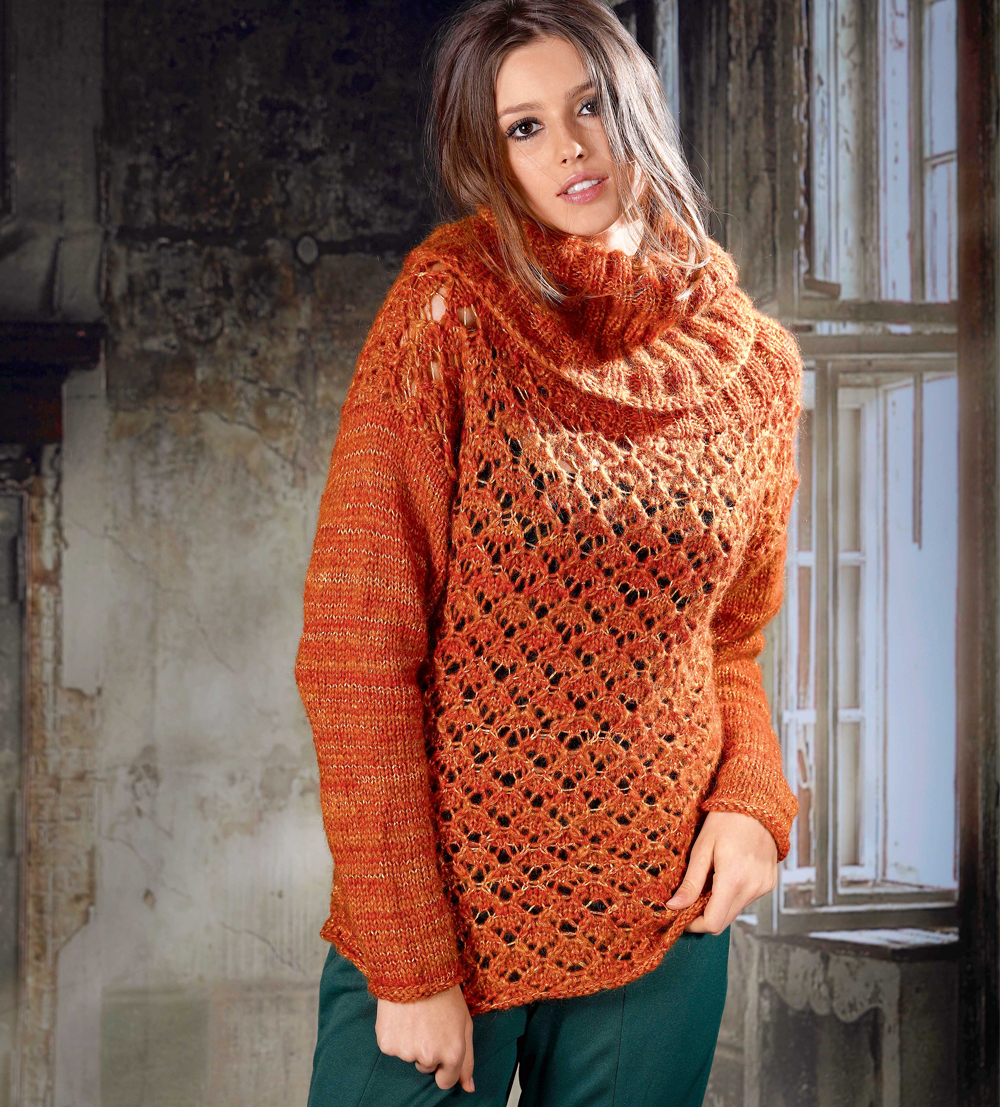 Свитер с большим воротником и ажурным узором - схема вязания спицами. Вяжем Свитеры на Verena.ru