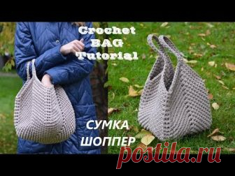 Сумка из трикотажной пряжи через плечо. Вязание крючком. Slouchy bag of T Shirt yarn. Crochet