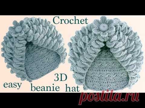 Gorro tejido a Crochet con hojas de merengue 3D y flor tejida a gancho tallermanualperu