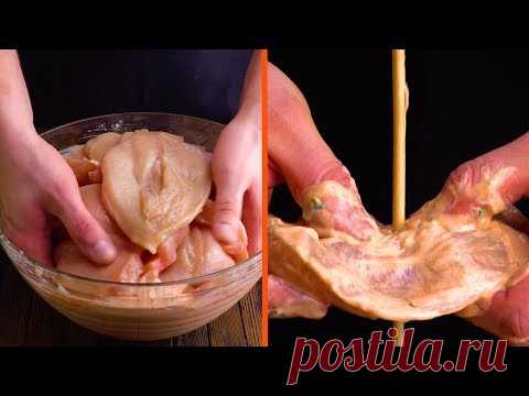 Складываем 20 куриных грудок стопкой и протыкаем шпажкой. Объедение!