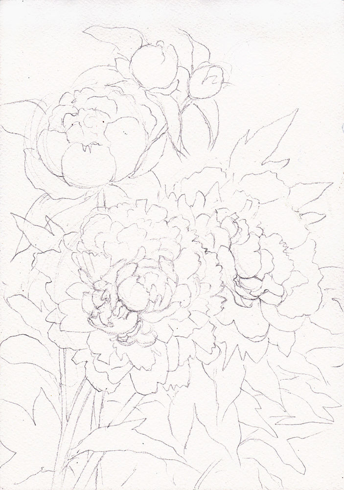 Реалистичное изображение розовых пионов в смешанной технике (акварель и цветные карандаши) – Ярмарка Мастеров