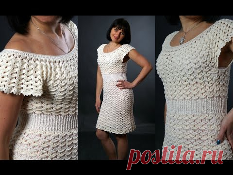 Платье летнее крючком ВОЗДУШНЫЕ ВЕЕРА(мастер-класс №1).Dress crochet, part 1. English subtitles.